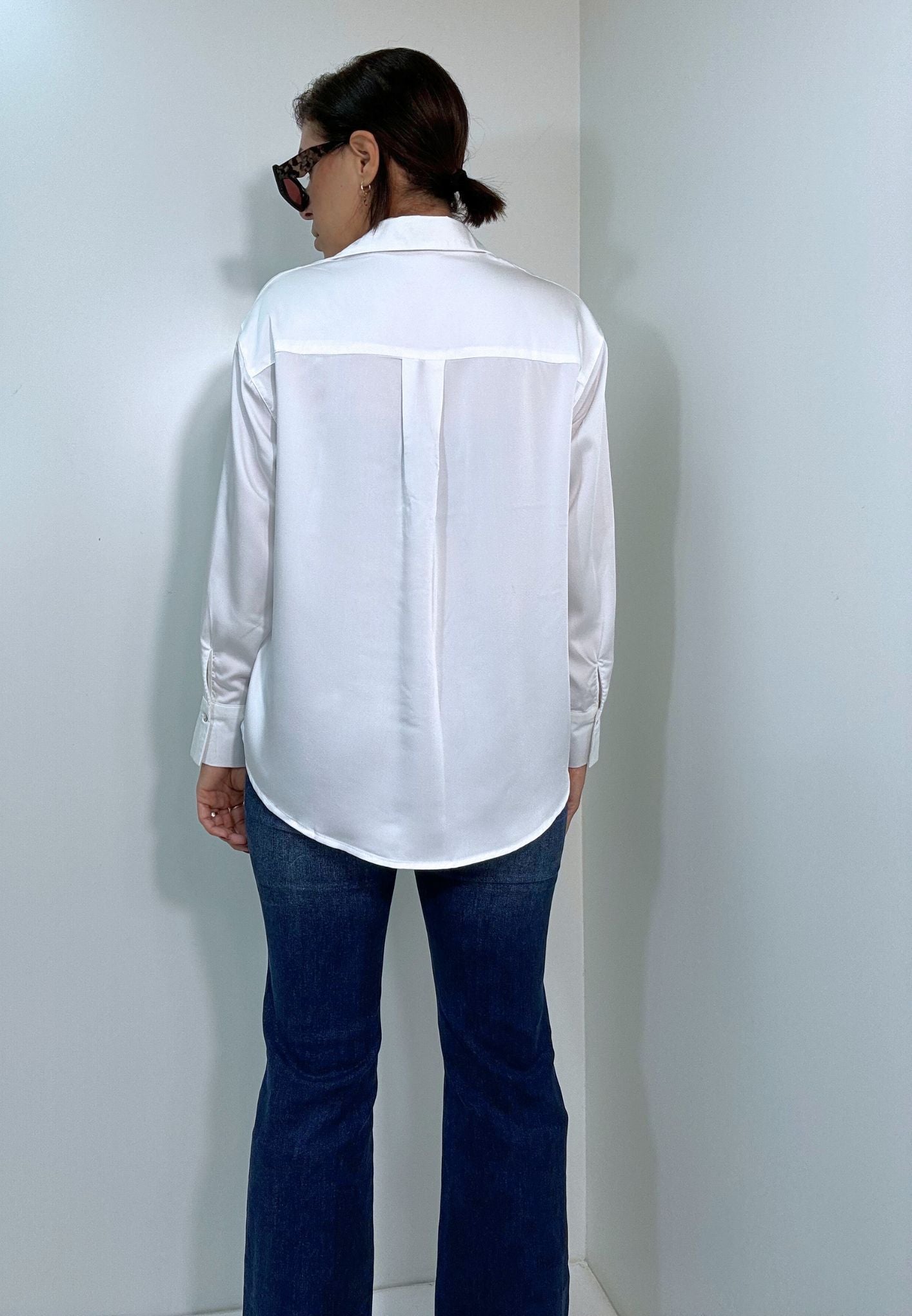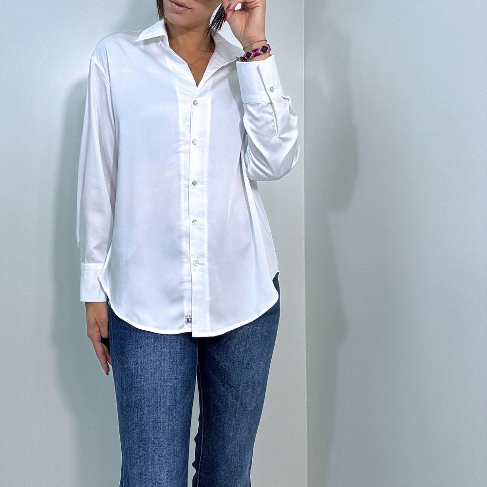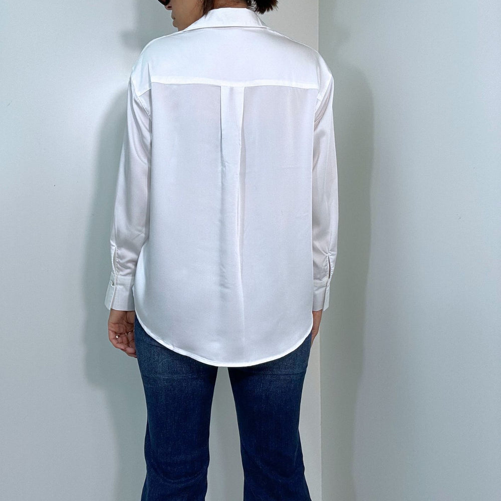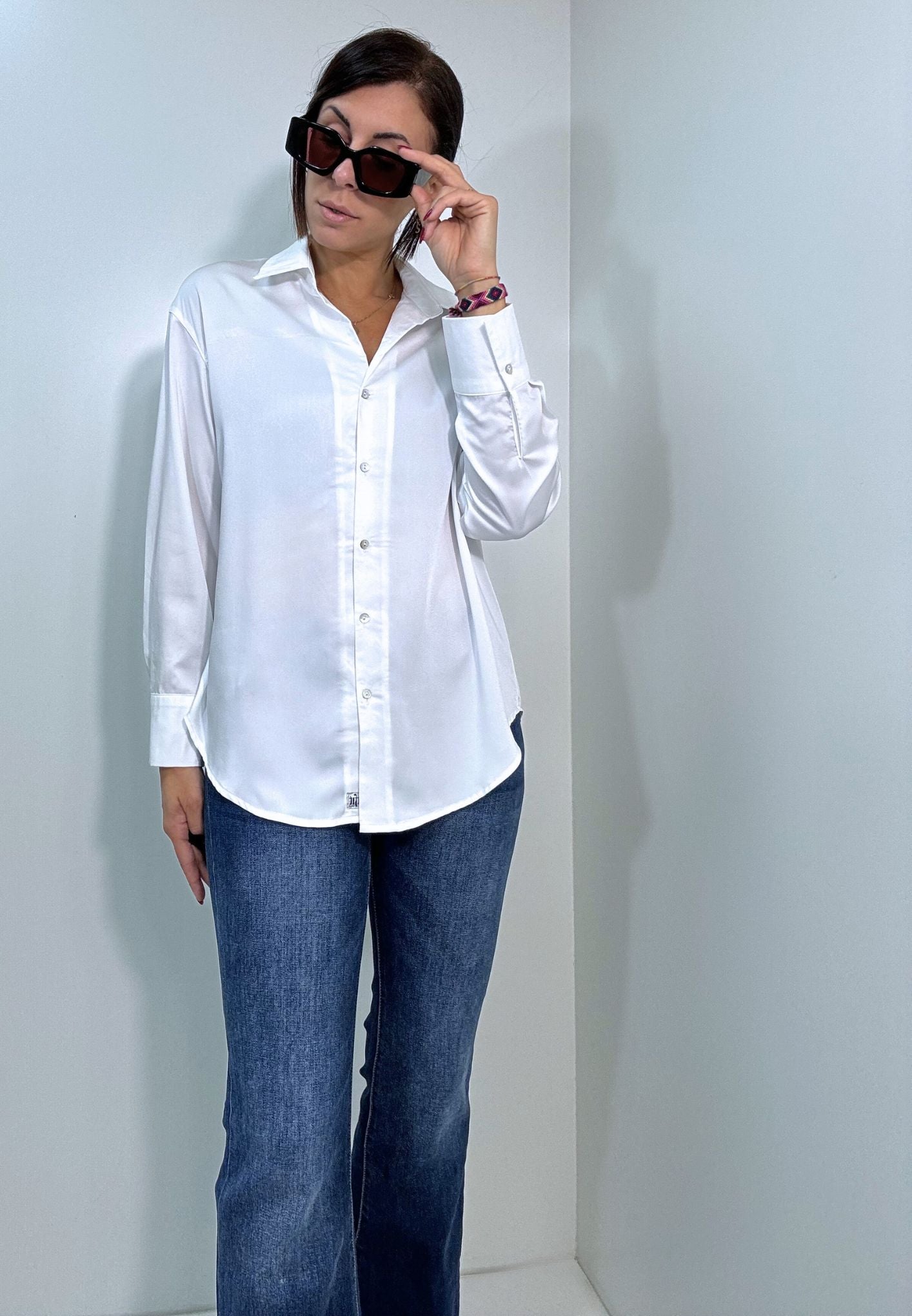 Camicia in raso di cotone effetto lucido e morbido, polsini con bottoni.