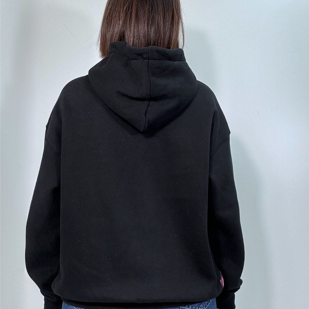 Felpa over con cappuccio e tasca a marsupio. Interno felpato, veste dalla taglia S alla taglia XL