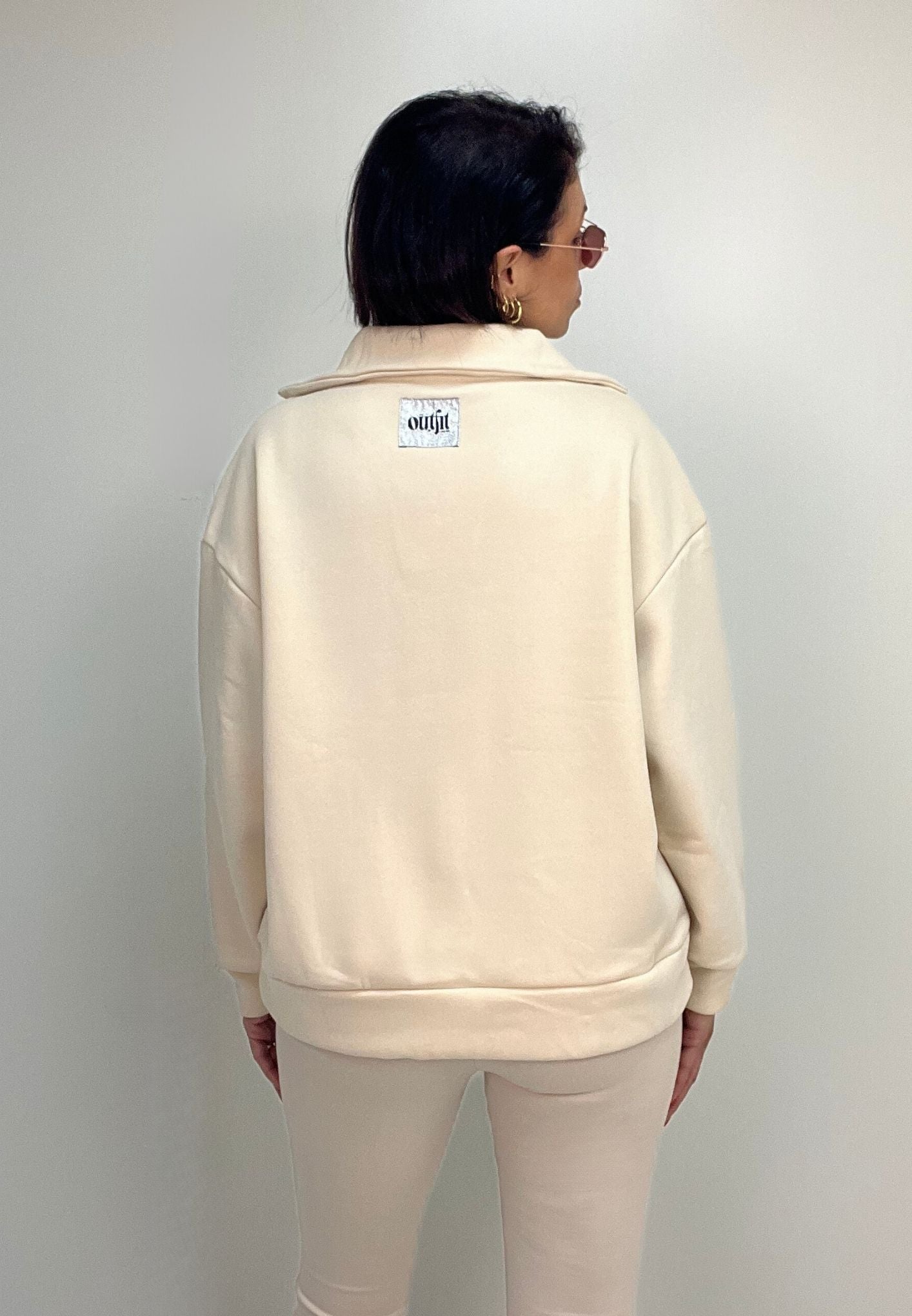 Felpa con interno in pile, over con tasche a marsupio e colletto a polo. Veste dalla XS alla L.