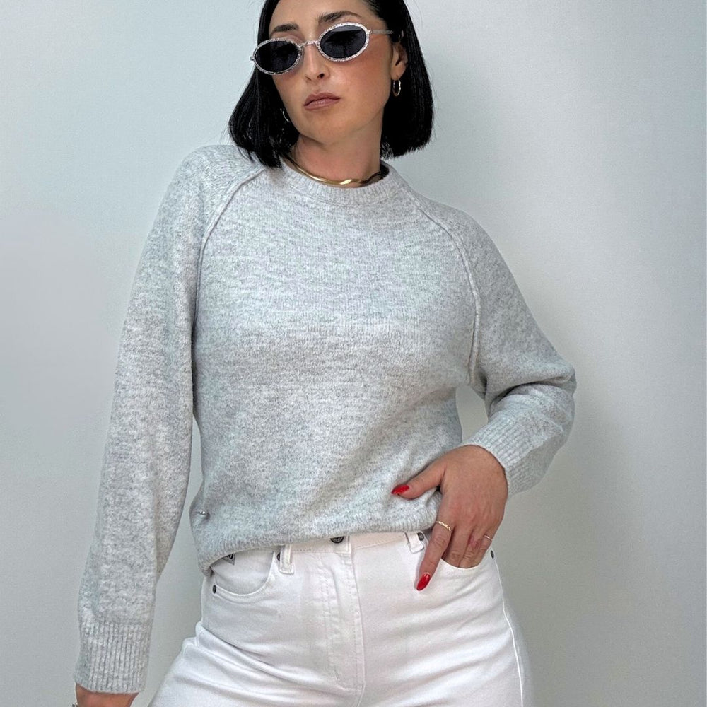 Maglioncino ultra morbido, girocollo con raglan e cuciture esterne. Il tessuto è ultra soffice e super caldo, la vestibilità è morbida ed elasticizzata. Veste dalla taglia XS alla L. Ideale per l'ufficio o per il tempo libero da indossare con gonne o pantaloni.