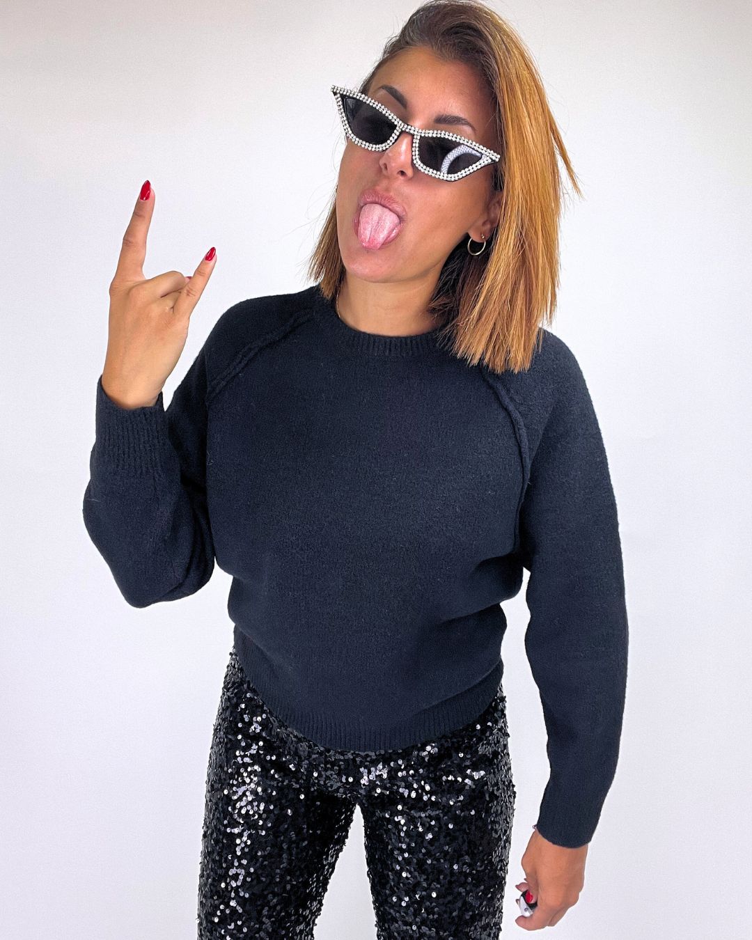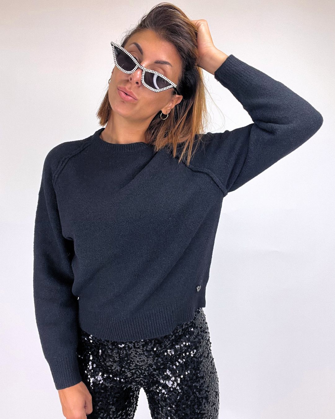 Maglioncino ultra morbido, girocollo con raglan e cuciture esterne. Il tessuto è ultra soffice e super caldo, la vestibilità è morbida ed elasticizzata. Veste dalla taglia XS alla L. Ideale per l'ufficio o per il tempo libero da indossare con gonne o pantaloni.