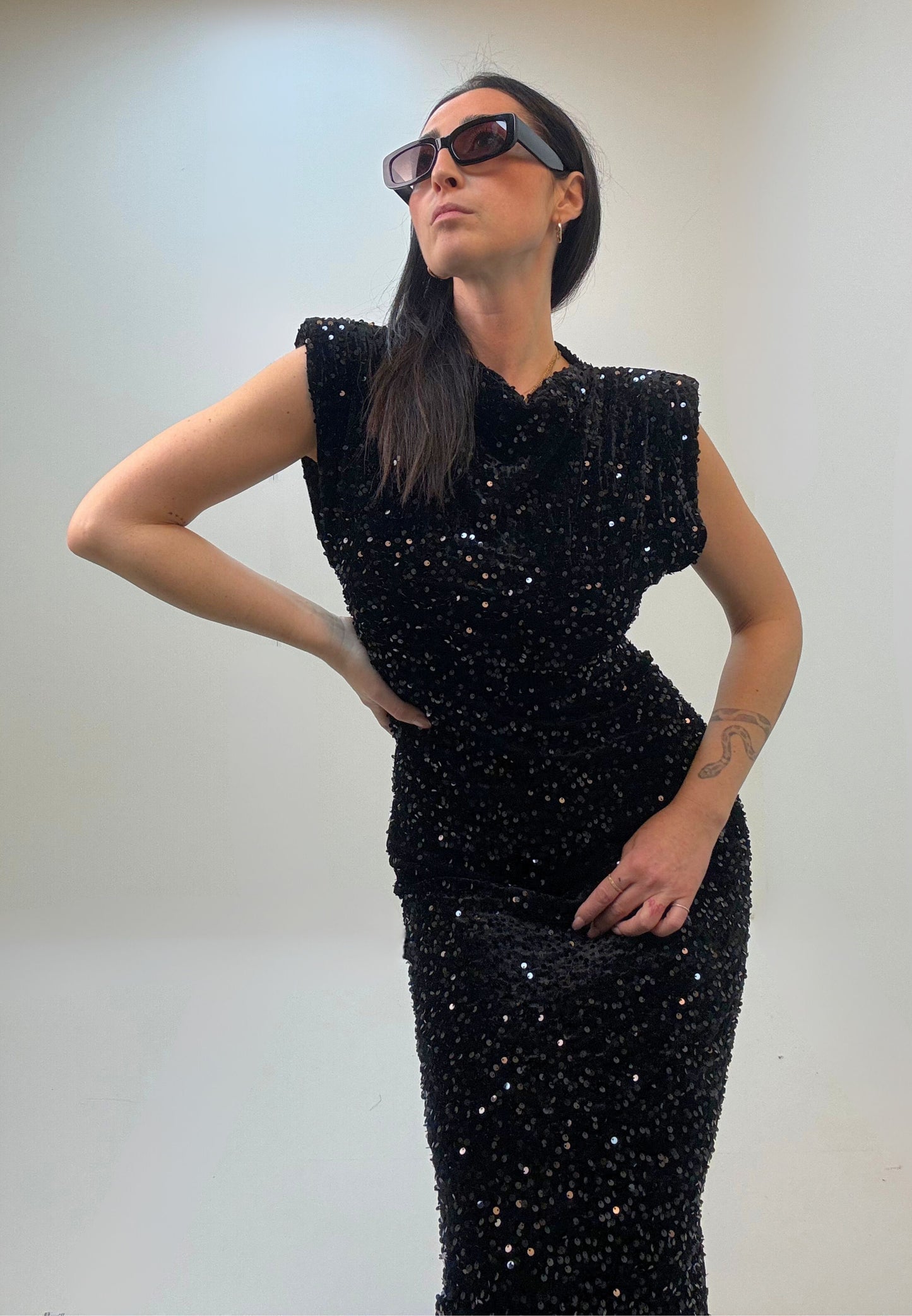 ABITO LUNGO PAILLETTES - FOUR SEASON NERO